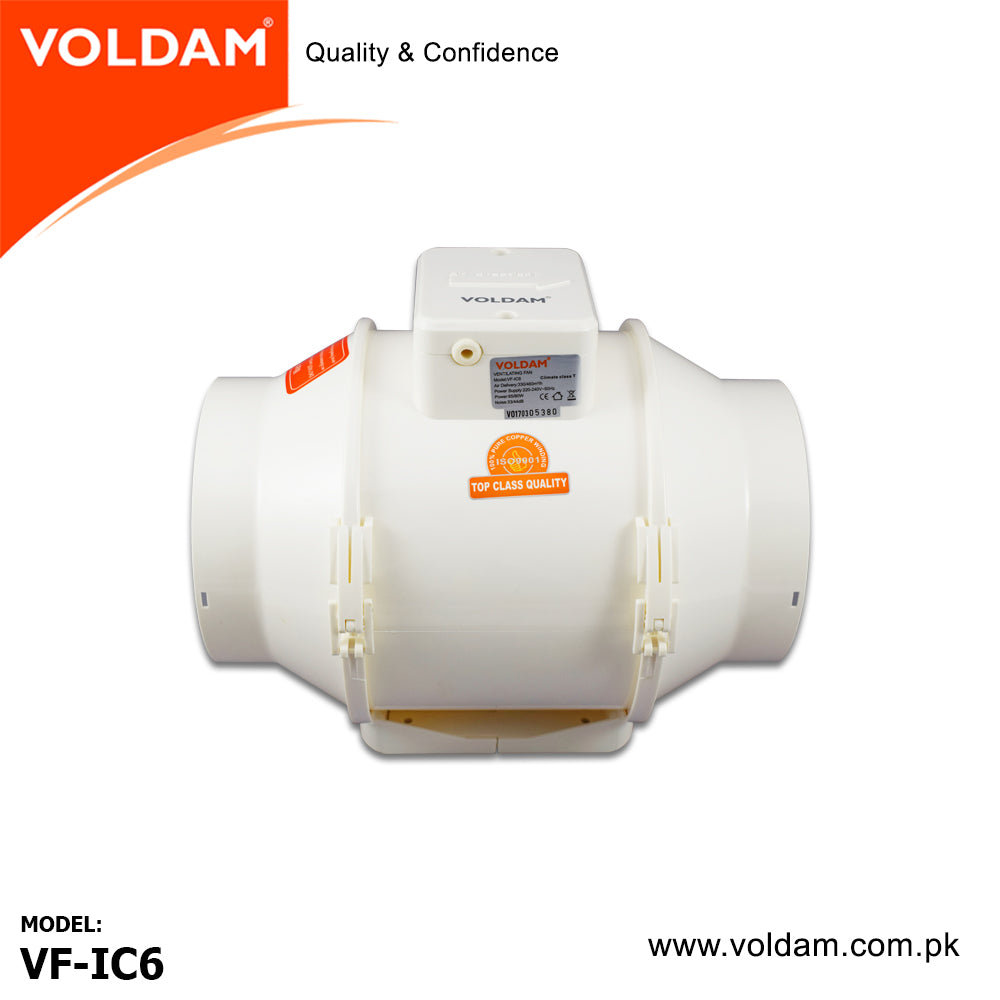 Voldam Mixed Flow In-Line Duct Fan (Exhaust / Blower) may be used to solve many air moving problems. They are capable of moving airflow through long or complex duct runs, and provide an ideal solution for areas that are hard to heat or cool. Voldam Mixed Flow In-Line Fans are designed for residential and light commercial ventilation applications. These compact, powerful and quiet fans feature a durable and a two speed motor energy efficient.