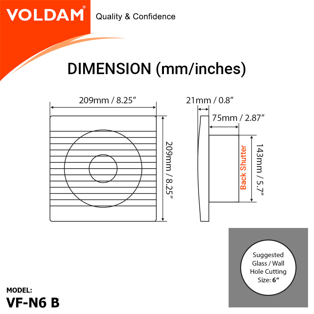 Voldam Slim, Unique and Stylish Exhaust Fan in Elegant Black